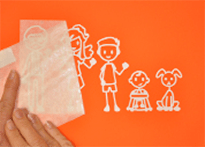 Separa la pellicola dalla carta più spessa, partendo da un angolo. Assicurati di piegare la carta più spessa con un movimento all'indietro tenendo ferma la pellicola. Se rimane un dettaglio sulla carta più spessa, riapplica la pellicola sulla carta più spessa e strofina con il cartoncino.